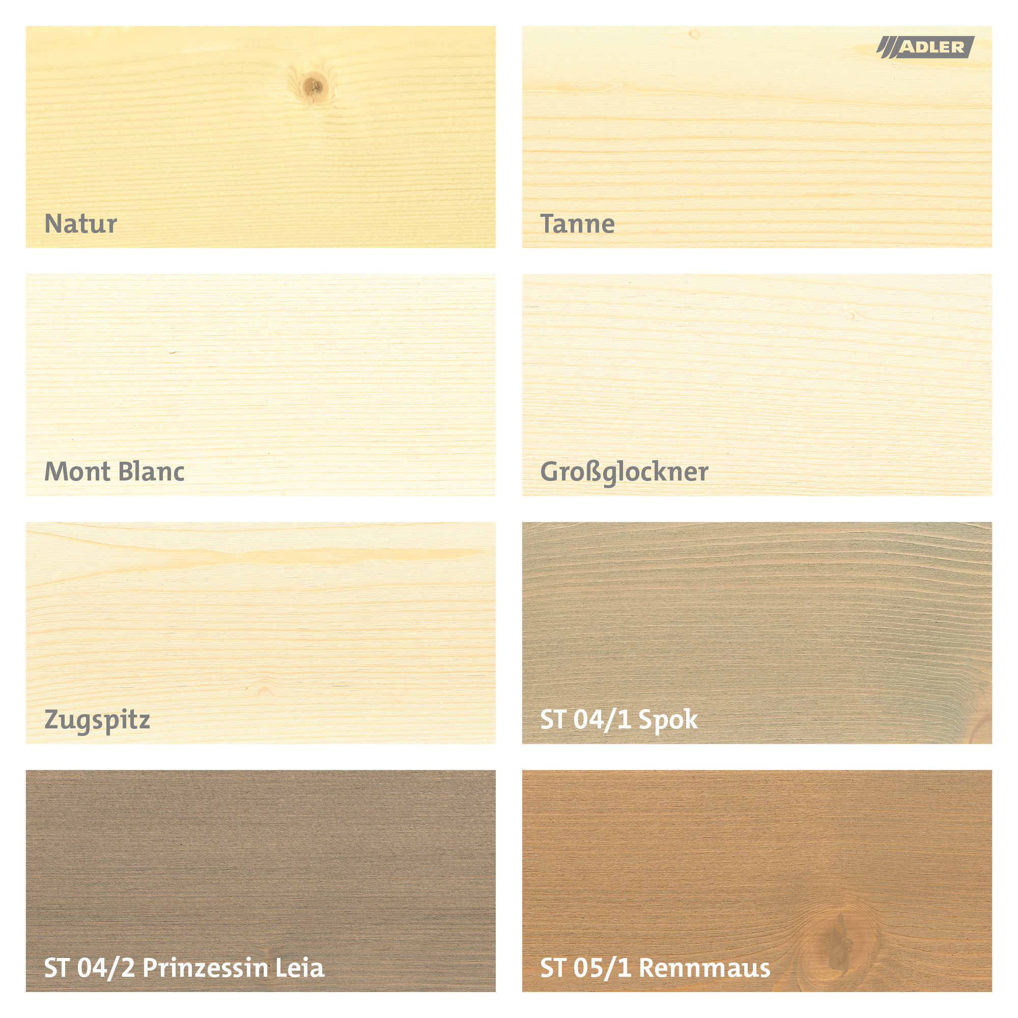 Below is a selection of the most commonly used Adler product suitable for wood construction. While standard colours are shown, Siegware has the capability of mixing other colours with our AdlerMix colour computer. Users should also be aware that translucent timber glaze colours are somewhat dependant on the colour of the underlaying timber. A sample pot is usually recommended for testing.